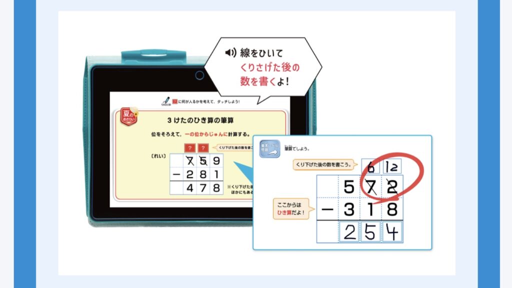 | 解き直し機能 | できるようになるまでやり直し(タブレット使用時) |