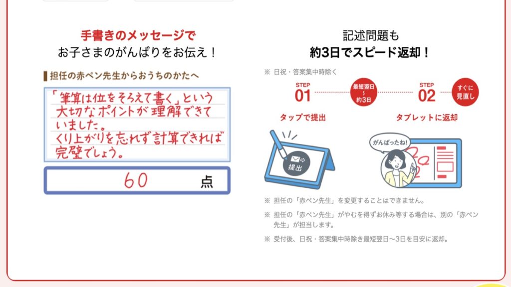 | 赤ペン先生の添削 | 個別に添削してくれる |