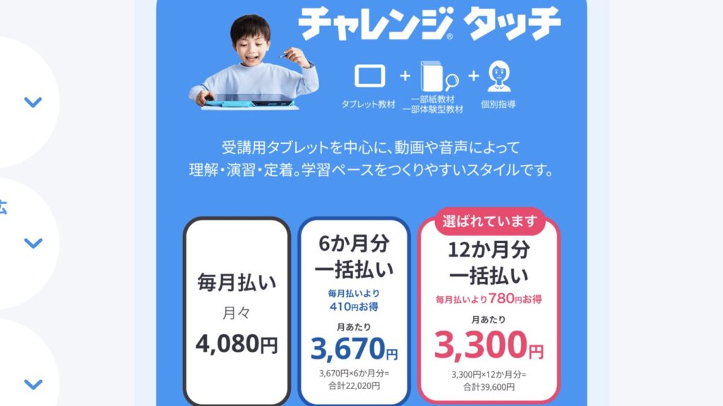 進研ゼミ小学講座は全教科セットで月額4,000〜8,000円。この値段は他社の通信教育よりも安い。適正価格。