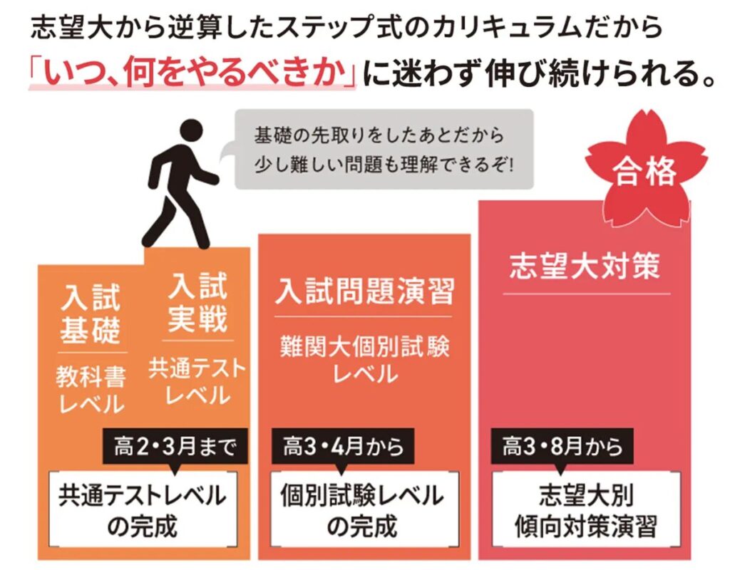 ただ、難関大志望ではない高校生のことも考えて、「国公立大」「私立大」のスタンダードカリキュラムなるものを用意しているようです。