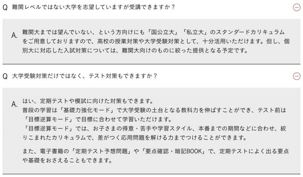 もちろん提供される教材の質はどうか?という点も重要だけど、全国の生徒向けに展開するサービスの授業動画・教材なので、一定のクオリティは担保されているはず。教育業界最大手のベネッセのサービスだし。