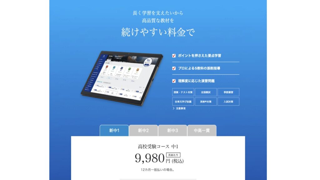 もちろん提供される教材の質はどうか?という点も重要だけど、全国の生徒向けに展開するサービスの授業動画・教材なので、一定のクオリティは担保されているはず。
