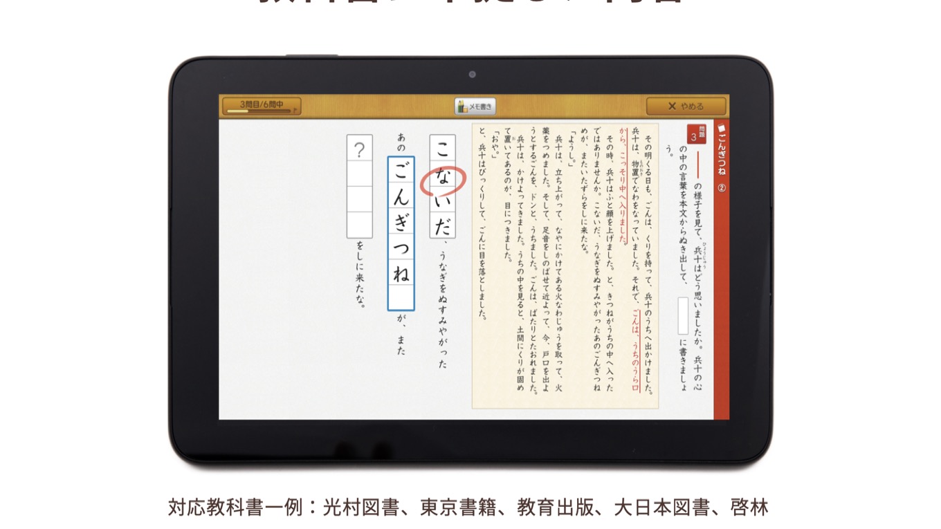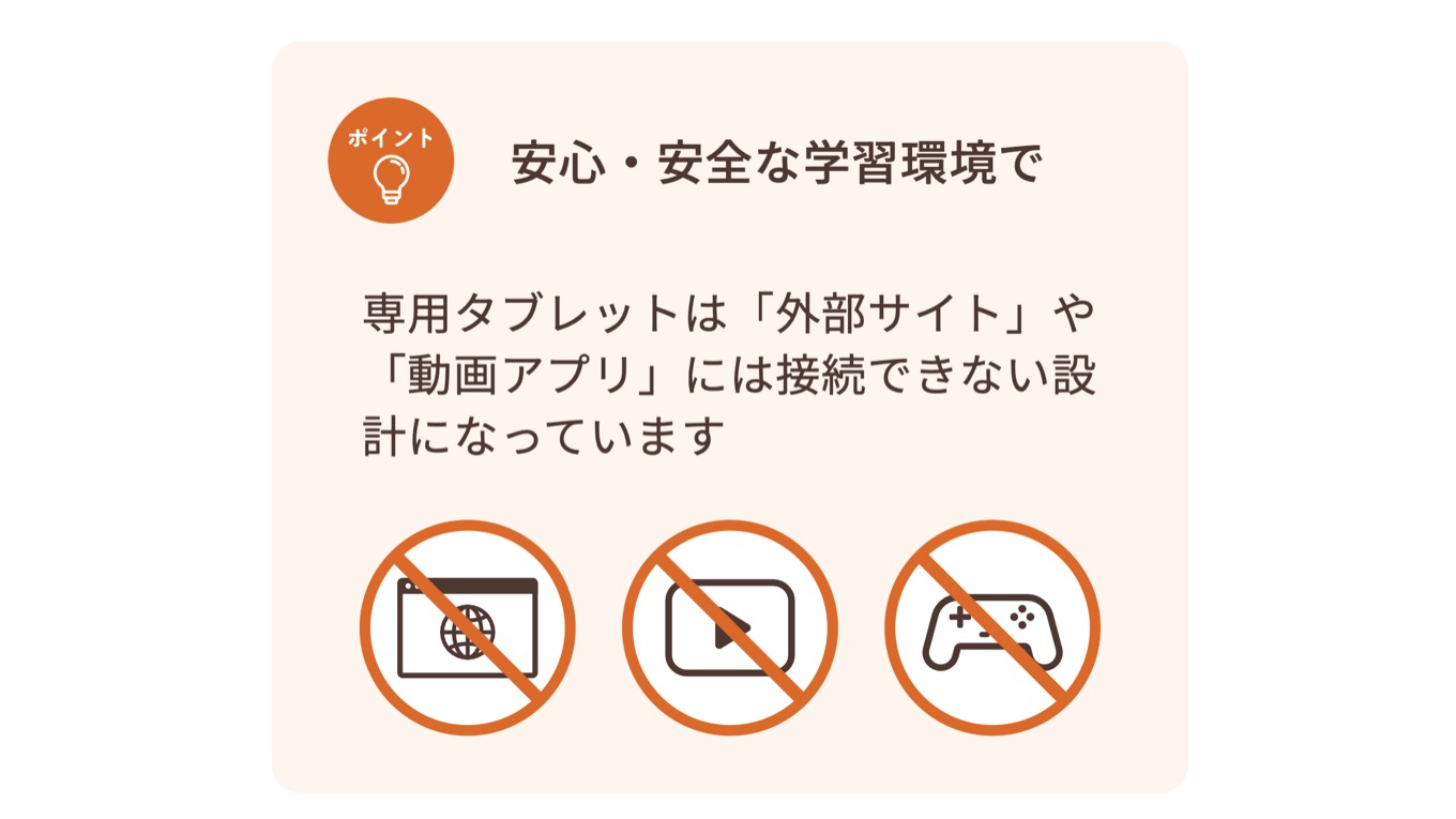 | 専用タブレット | 専用タブレット or 紙テキスト | 専用タブレット or iPad |